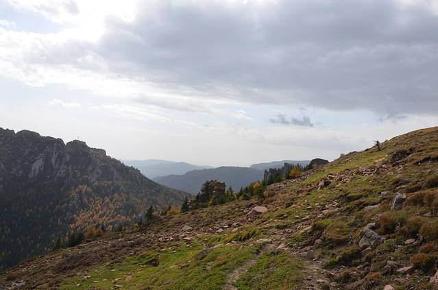 大团黑乌云压下来了,不敢再往前走,紧急下撤,下返过程中雨就下起来了,好在我包里有雨衣呢,不然这背包和相机可就要洗澡了。