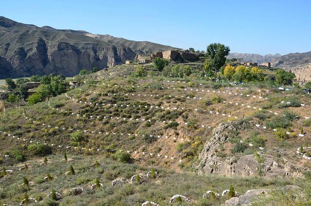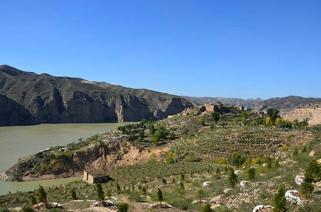 在景区徘徊,久久不愿离去,下午一点半到达老牛湾村,敲定住宿的窑洞,每间150元,想吃口现成的饭然后去黃河边坐船了。正因了这顿饭,改变了我们的行程,饭前,服务员一再问我们是不是打电话进来的,是不是用农家院的名片没有买门票,我们给予了肯定的回答。其它不表,只说这顿简单得不能再简单的饭吧,四个人,一盘大烩菜:白菜、粉条、豆腐,不带一点肉腥,要价80元,一盘黃河鲤鱼,四五大块吧,要价160元,二瓶普啤20元,二盘米饭20元,如此让人咂舌的价格啊,我这才明白为什么一再追问我们是不是拿名片没有买门票进来的,原来是在这里等着来宰我们呢。