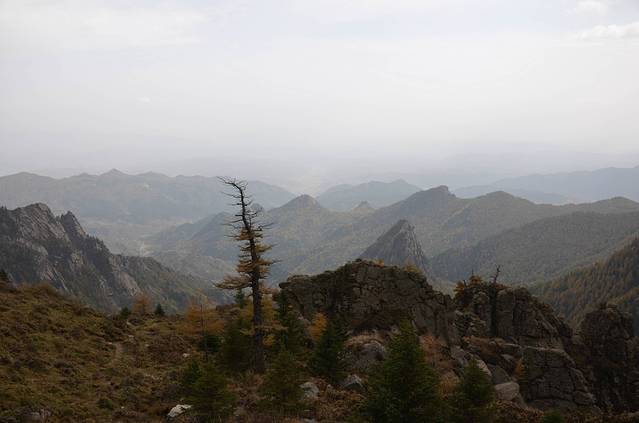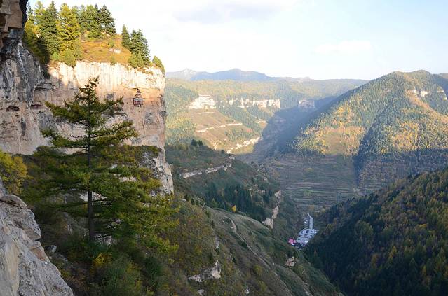 宁武悬崖栈道,山势很险,铁栈道直上直下,颇费力气呀,气喘吁吁了,但一定要坚持爬上去,不然美景怎么能看到呢?下午了,斜阳西照,阳光暖洋洋的,照得山峦和树林都很美,金秋的山顶上戴了一冠金色的帽子,我想那峨嵋金顶亦不过如此吧。雄山奇峻,秋色美景,一览无余,美!
