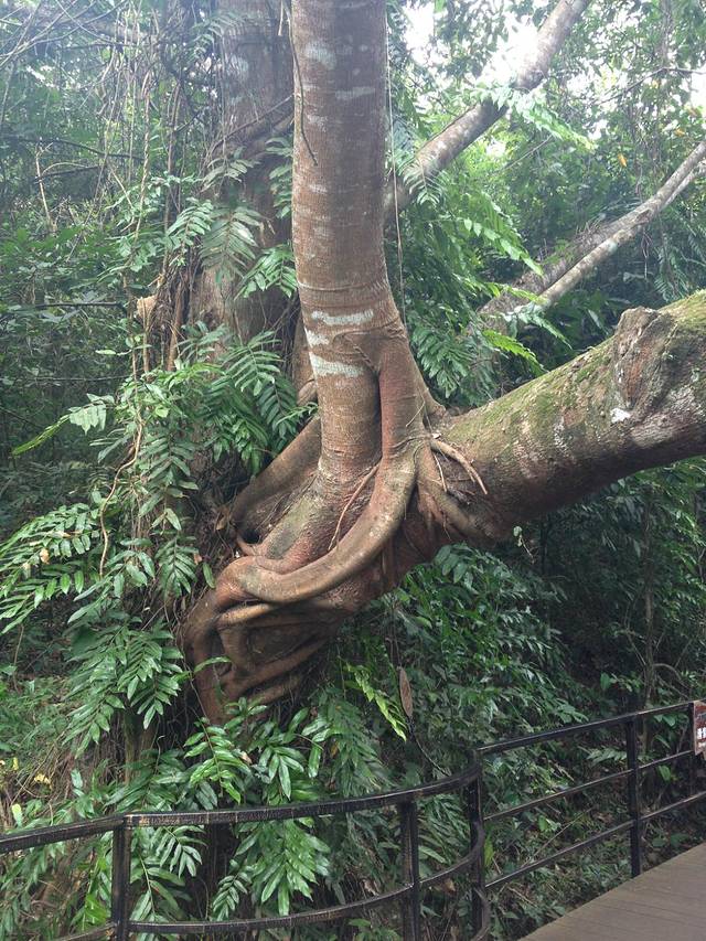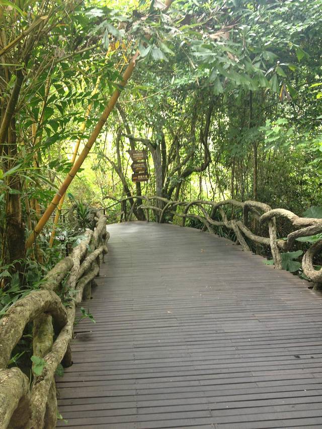 来到最想逛的热带雨林,也是中午赶公交到的,永远都不会忘了。因为要登山所以会有班车送你去山脚下,本想蹭个旅行团,一路紧跟,不到20分钟就带出景区上班车下山了,把那团人坑的一愣一愣的,搞的我还以为有下一个景点要逛,也坐了下去,后来跟景区班车司机说了后又重新上山逛了五个小时才下来,囧!注:景区山上有人拿着鹦鹉直接放游客身上照相,每人10元,大家小心,小生就被这样宰了20。