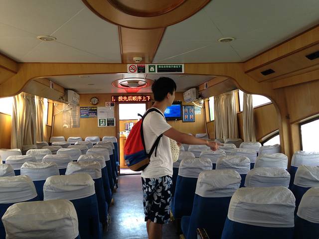 游轮还不小,第一次坐,晕炫了,靠窗位置看到浩荡的海面