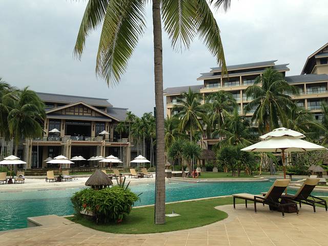 大东海游玩两天之后坐公交大巴15路来到最期待的亚龙湾,我们在百花谷广场下车,离酒店还有一段距离便打车到达维景,出租车很多很方便。入住维景的2楼园景房。维景在亚龙湾算是性价比比较高了,不过如果要体验一把奢华的感觉,可以定瑞吉,有游轮直接通往酒店大堂哦~