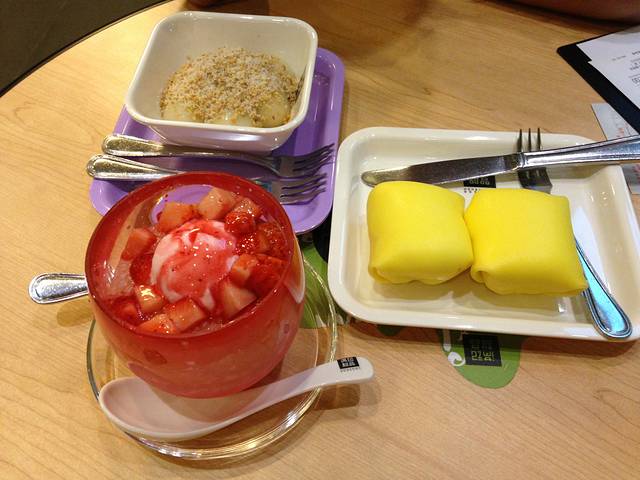 百花谷的最爱——满记甜品,点了新出的草莓西米露,香蕉班戟,糖不甩,晚上不是很饿,吃完已经很满足了