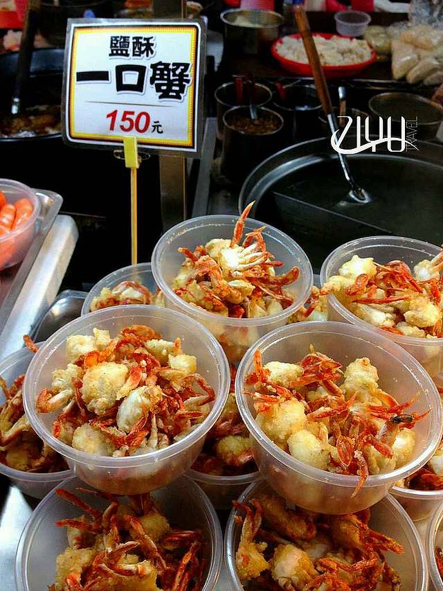 夜市很大,各种台湾夜市的知名小吃一样不少。鸡排,爱玉冰,琳琅满目的水果,一口蟹,大肠包小肠