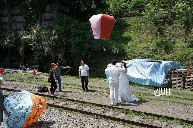 在离台北约一小时车程的地方,有一条平溪线。平溪线是一条铁路支线,曾为运输煤矿兴建,如今已改作客运,是台湾最文艺的三条铁路支线之一。总有文艺青年来此寻找台湾的铁路古早味道。在平溪线上跑着的火车是只有四五节车厢的小火车,车身上绘了不同的颜色和樱花图案。彩色的小火车就呜呜地开了起来,买的都是区间票,自然也不指定座位,像是电车般沿窗向两侧延伸的座位上挤满了充满期待的年轻人们。一路青山绿水,景色清淡雅致。