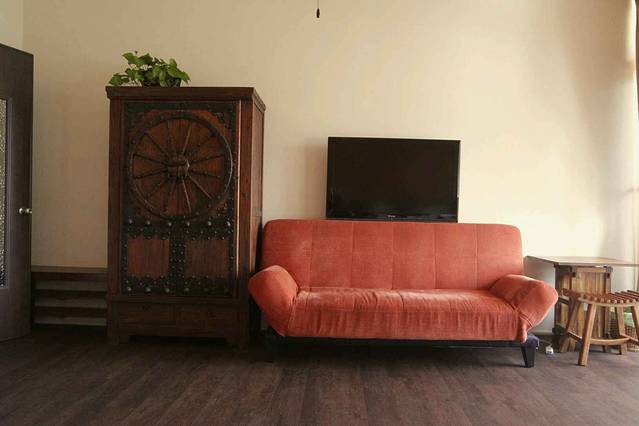在一楼的右手边有一个大客厅,有沙发,电视,这些其实也不算什么,重点是友梅姐特意采购的古董装饰,她希望通过自己用心的布置让客人在这里有回家的感受,我私以为她是希望把自己的对生活美好的正能量散发给来住的客人们。