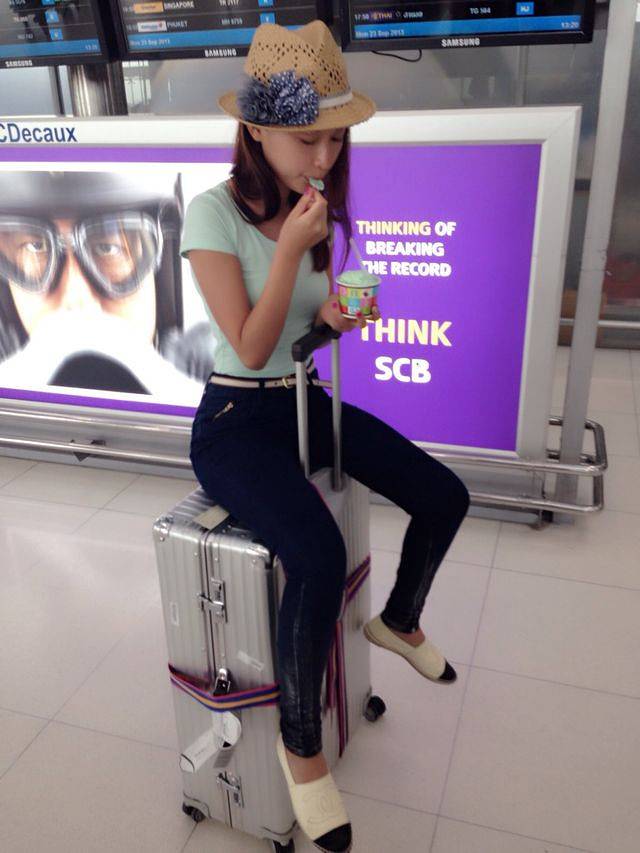 由于转机时间很漫长很无聊,在机场又吃了顿泰式午餐,再吃个冰激凌消磨时间,实在无聊,某人就开始拿我玩了,把我放箱子上来回拖扯,早知道有这货,当初我就不该买比我大的箱子!哼!