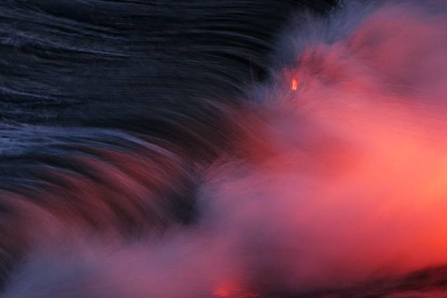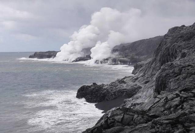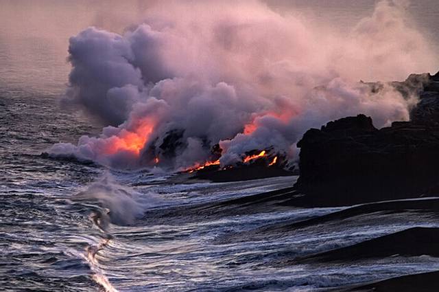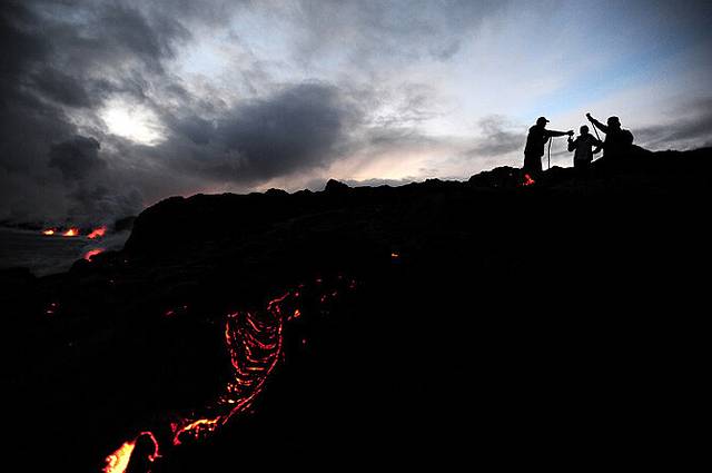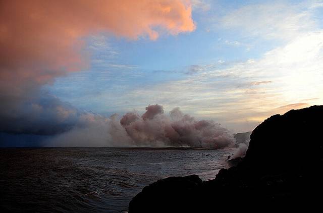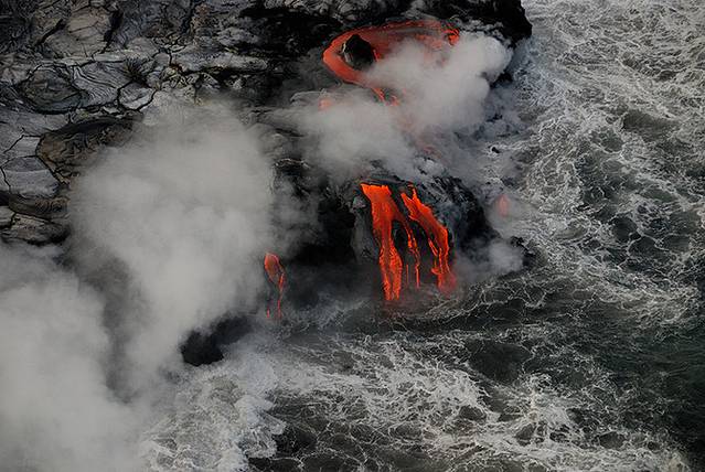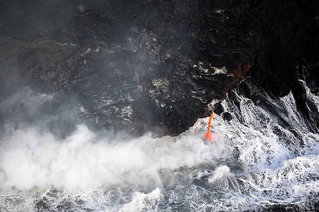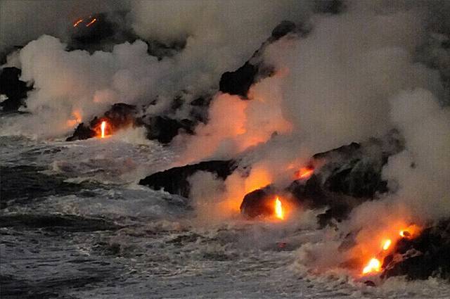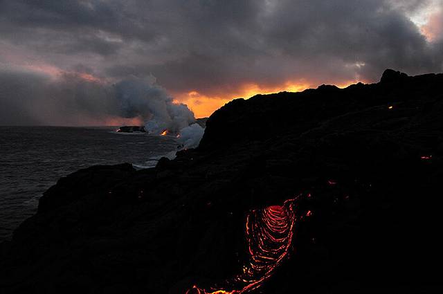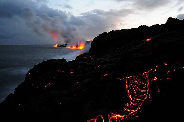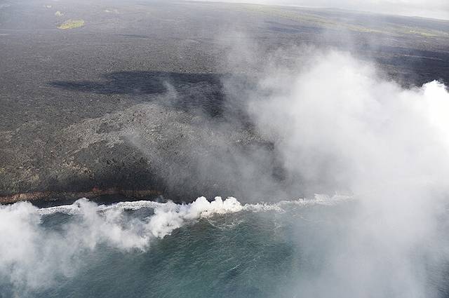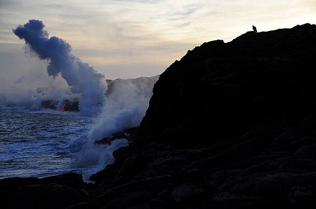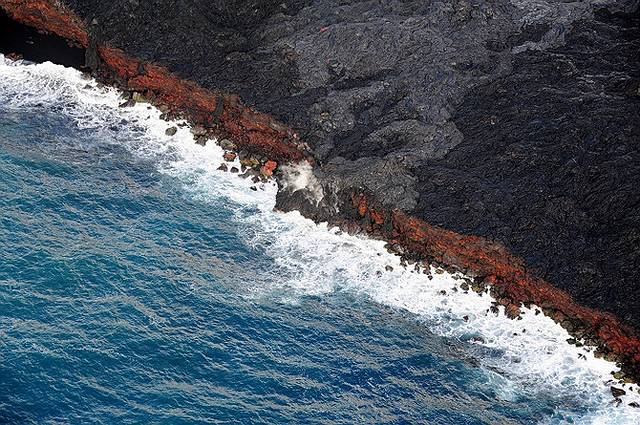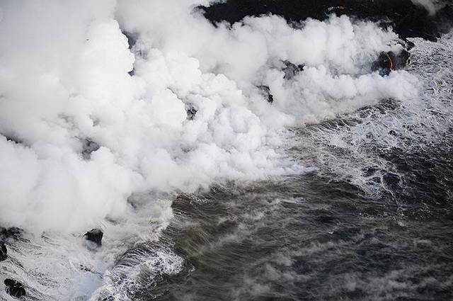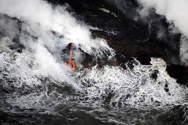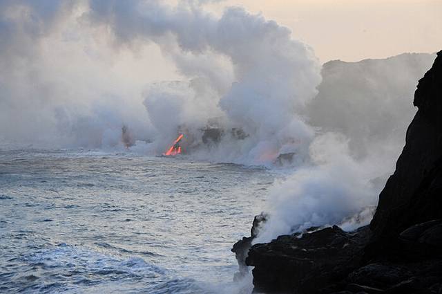 海岸边,探寻和观赏Lava Flow Enter the Ocean