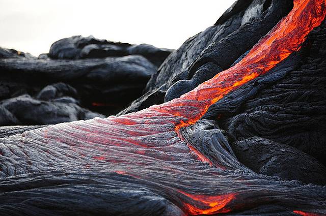 夏威夷群岛由8个主要岛屿组成,这些岛屿的形成都是在N年前因为火山喷发和引起地壳运动隆起而形成的,至今这8个主要岛屿都还遗留着死火山和火山口的地貌特征,但现在唯一可以观测到活火山和熔岩流的岛屿只有夏威夷岛(即大岛),而大岛目前有4个主要火山口山峰,但至今还在不断喷发热量的也只有Mauna Loa和Kilauea火山口,而且大部分时间都是地下的Lava Tube涌流方式,在大岛的火山国家公园东部边缘和外围的Puuoo和Pali地带,以及海岸线附近喷发涌动出来,形成我们看到的Lava Flow。