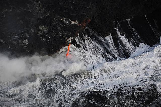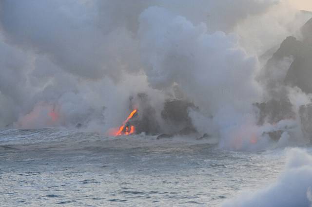 4)游艇可以近距离观测,聆听和拍摄熔岩瀑布坠入太平洋的壮丽景观