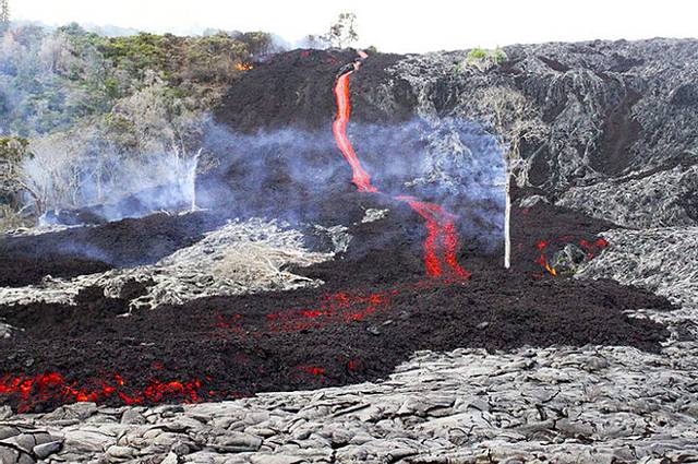 这个Lava Flow形成了Lava Pond还在不断涌流和扩大他的阵地