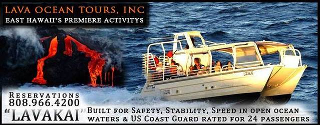 在夏威夷大岛Hilo经营游艇观赏Lava Fall的公司主要有3家,他们的网址如下,前二家已经经营多年,最好的清晨旅程的价格分别是185和175美元,其中的游艇有小小差别,而第三家在我去夏威夷期间还未开张,只是最近上网查询才发现已经开张,也许是新人,其价格也是稍微便宜为165美元,但我想其实行程路线都一样,都是沿着海岸线的行程,所以我认为更具性价比。