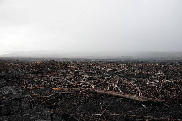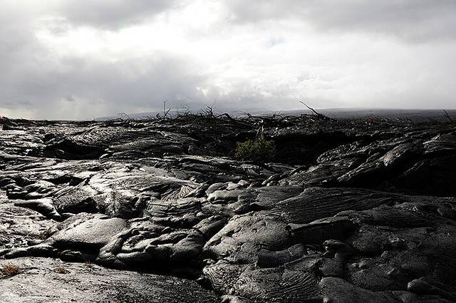 大约走了20分钟,David指着这一片曾经的树林说,这本是他的一个Friend的家,由于2010年Lava Flow改变了方向和流量,冲毁了他朋友的家园,现在他和他朋友都住在现在的Kalapana地方,不知道N年之后,David是否又要建新房住新家?