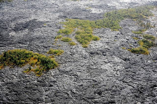 脚底下是经过熔岩流毁灭后的“孤岛绿洲”,据介绍这里的熔岩流是2010年左右的根据地