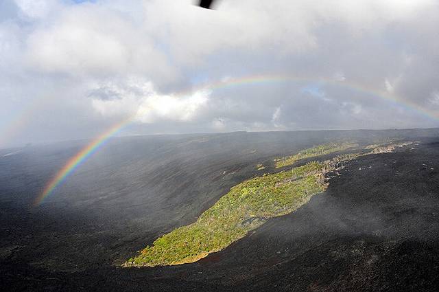 6)位于火山公园边缘Pali地带的熔岩,雾气,绿洲,彩虹,组成一幅壮美而威武的画卷