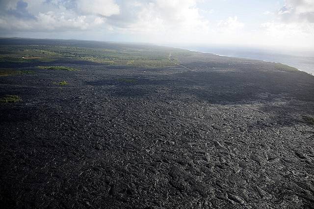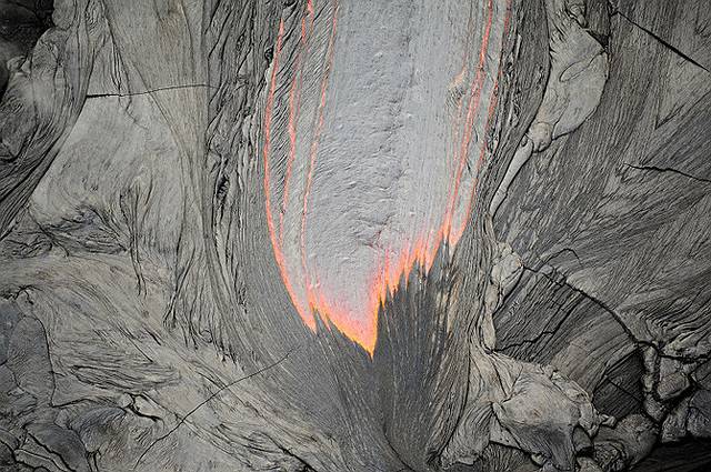 40分钟之后,我们渐渐看见Pulama Pali附近的火山熔岩情况,这里堆积了大量由Puuoo Crater泄漏出来的表面Lava Flow,因此也是非常壮观的,由于我们更喜欢Lava Flowing into the Ocean,所以我们就不去这Pulama悬崖一带,留着下次遗憾吧。也许你已经去过和造访过这里,也有美艳的图片,欢迎加队上传一些照片以飨读者?