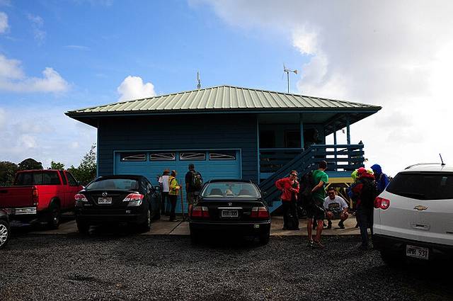 按照邮件和向导David的确认,我们一行是下午3点整驾车离开Hilo酒店前往聚会地点Kapaahu,一路比较顺利我们在4点前到达Kapaahu并看到私人地域不得随便入内,但我们不管这些继续驾车进入,二分钟后到达Kapaahu停车场有为美女值班人员前来探寻,并说现在已经过了下午2点,徒步探险Lava Flow因为安全问题已经Closed,目的是让我们回去明天再来,不过老练的LZ再她耳边嘀咕了二句,于是这位“靓女”面带笑容地立刻放行,而且还附上“Good Luck and have nice trip”,于是我们继续驾车,终于在4点前到达David的蓝色小屋B&B,不过我们已是最晚的迟到者了。