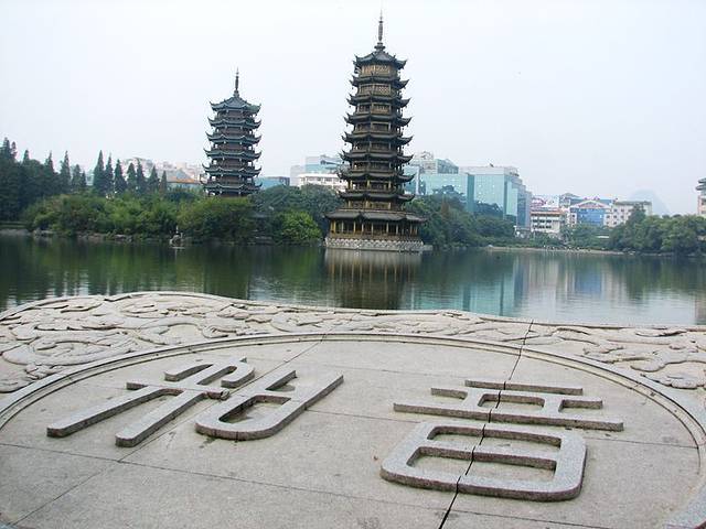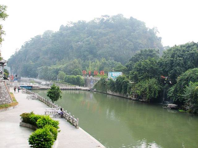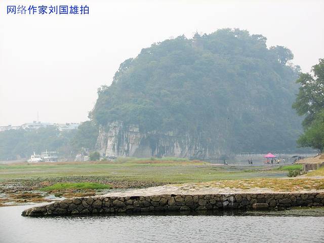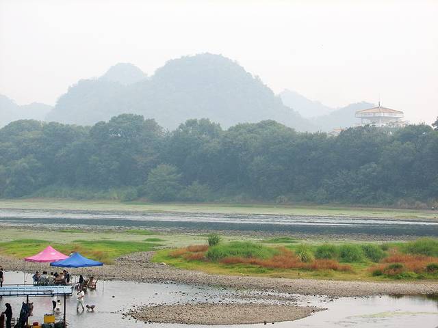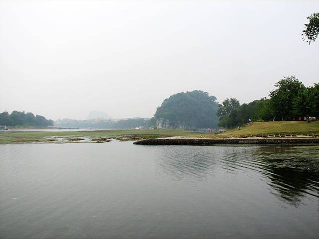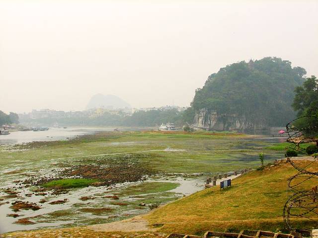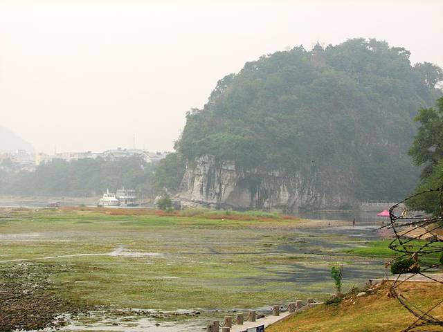 9点半,吃完早餐,我又到漓江边游玩,当天的天气灰蒙蒙的,水偏小。从喜来登大酒店走到象鼻山就几分钟就到了。不过象鼻山对面划为景区,75元的票价人好多游客望而生畏。于是像我一样走到左边的漓江边,这里也能看到,只是有点远。不过这样的天气,这样没水的漓江。景区不进也罢。桂林漓江边象鼻山公园附近,树木翠绿,大妈们在跳舞,很惬意的地方。