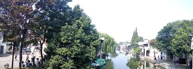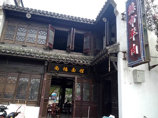 游览完两处景点后来到小河边,小河两岸即为南东街和南西街,两条街中间有几座小桥相通。沿着河边可以一直向北步行,街两边便是景区内的几大景点,分别为张石铭旧宅、求恕里、刘氏梯号、广惠宫、丝业会馆等,既有庄园老宅,又有特色的当地蚕丝工业的历史展示,各具特色,可以一一前往游览。街上还有几家手工作坊,可以购买当地特色的糕点小吃。沿南东街经过丝业会馆之后,右手边是便民路,路上有多家小吃店,尤其是面馆比较多,可以在这里尝一碗江南特色的双交面。