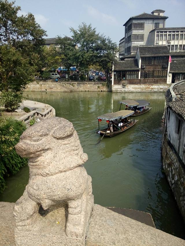 闲来驱车到南浔,古镇虽小,亦有独到风光。南浔和西塘的感觉类似,是个生活着的很安静的古镇。想来其实江南的古镇大体都是如此,依水而建,户户人家尽枕河。黑瓦白墙屹立在蓝天绿柳之中,显得格外秀丽清雅,就像是温柔恬静的江南女子。“小桥,流水,人家”是古镇的特色,拾梯而上,从桥望去,几艘小船懒洋洋地停泊在河面,眼前是垂柳依依,一边是亭台楼榭,远处的房子在波光粼粼中若隐若现,怎么看都是一幅绝美的山水画。不时看到老者在自家的宅子前静静地晒着太阳,眯着眼,享受午后暖暖的阳光。古镇并不大,走走便到了尽头,于是坐在沿岸的木凳上,享受眼前的水乡风光。有人在河边洗衣,有人拿着掸子弹晒的被子,往来三三两两走过的当地居民,无一例外地都气定神闲,而耳边传来一户人家播放的温软小调,我想这便是江南的韵致,较之地理更为人文的韵致。