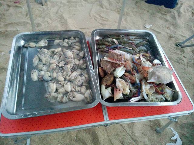 吃完晚上还准备放笼子抓螃蟹~~晚上下了阵雨可能抓不到螃蟹吧~海浪很大~~