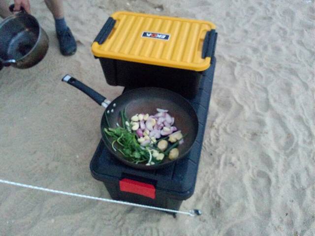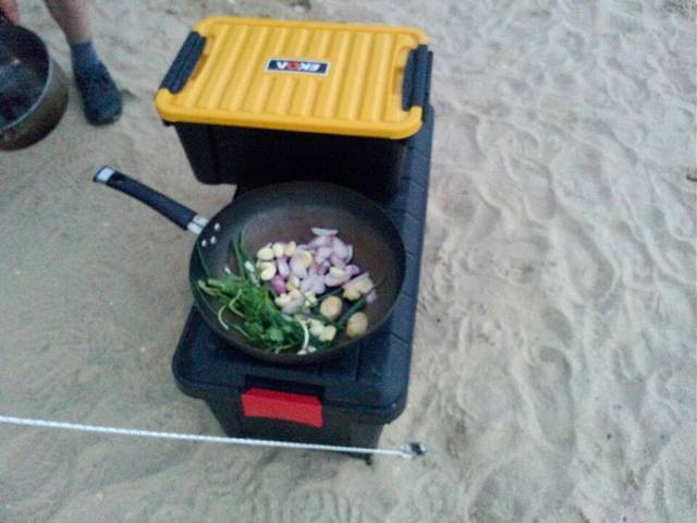 摆放桌子完毕开始准备晚餐~~自制海鲜大餐~~就让周围的人羡慕妒忌我们把哈哈~~