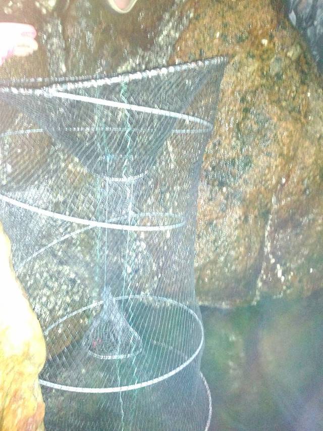 一早起来看看有没抓到螃蟹~~结果只有一个小鱼~~~哈哈哈哈哈哈~~~六个网就捉了一条小鱼~~~~