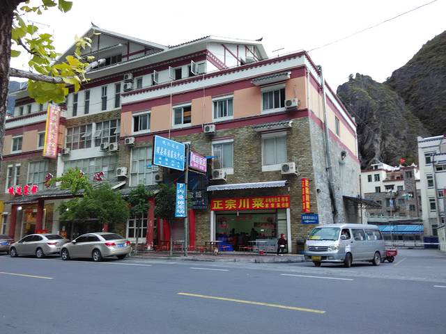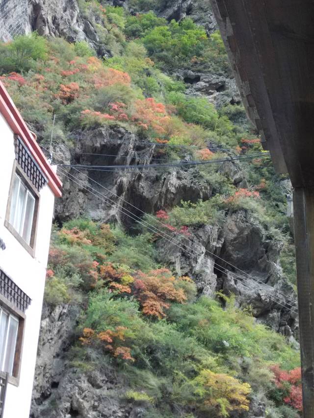 我是在去哪儿网上定的旅店,88一晚到店付,住了两晚,老板很好,就是WIFI信号不好。理县很小,到处都是旅店,饭店也多,但味道不要抱希望!旅店外面山的红叶。