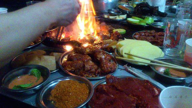 2013年7月22日,13:40出发,通海堵车1个半多小时,同行的两车底盘稍高,调头冲过高坎扬尘而去,余我们独自等待,可怜的小+。20:00达楚雄服务区晚餐(有一车直接由昆来相遇),开始了我们四车七人的行程。22:30至大理,酒店小休了会,达龙须河畔“开心烧烤”甩鸡脚筋、乳饼、牛肉、排骨、三线肉、鸡肫、小瓜、莲藕、洋芋、凉米线,红河焖锅酒、大理啤酒、、、、主人满满的热情在这高高的火焰映照下体现的淋漓尽致,感谢主人,我们以名符其实的开心烧烤开始了愉快的旅程。