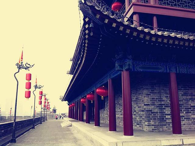 在城墙上拍的西安火车站,近在咫尺。样式还是那么的大气稳重,虽然比较老了,但总是能让人联想起来一千多年前的那个盛唐的雄浑大气。