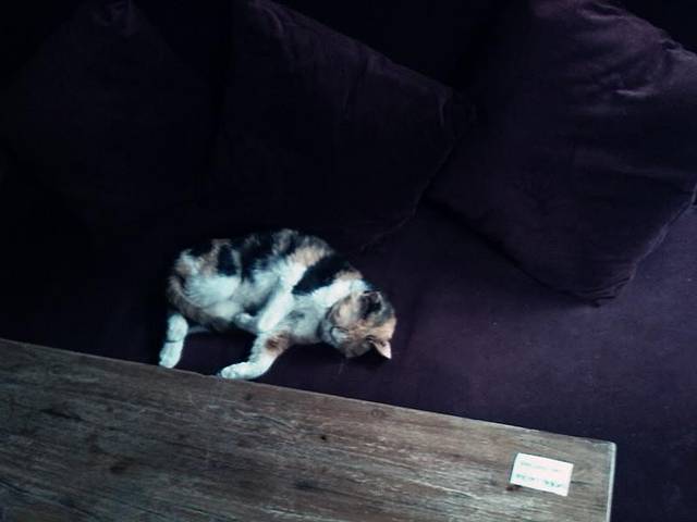 睡在沙发上安静的猫咪。好像是习惯了这么多人吧,看到陌生人也不害怕。