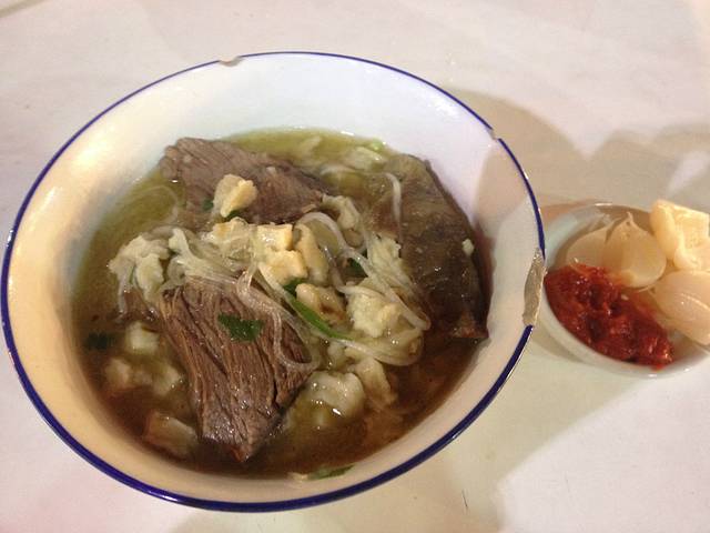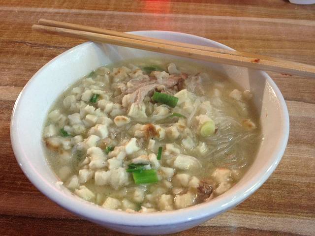 到洛阳早餐必须喝汤,甭管是牛肉汤、豆腐汤、丸子汤还是不翻汤,总是要来一碗的。坐车去吃了名气很大的马杰山牛肉汤,5元一碗,馍1元一个。味道还好,可能是我的嘴巴太刁了。是没有勺子的哦,豪放的抱碗喝吧。