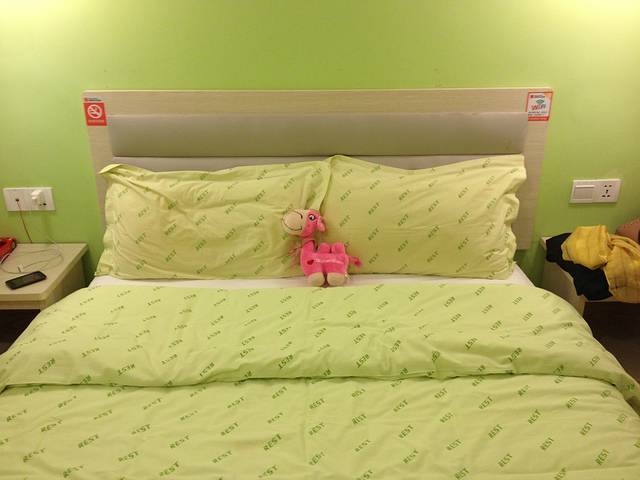 酒店据说是14年新开的,去哪儿上预订的99元大床房,就在马路边上很好找,酒店的工作人员态度很赞,很热情。房间很温馨也很干净,设施齐全。