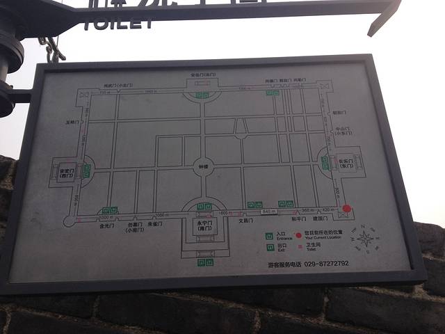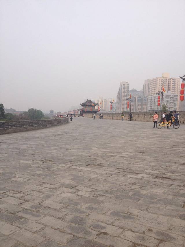 从鼓楼坐12路一站到南门,走地下通道到西安城墙。门票54元,学生证27元。城墙超级长,成四方形,分为东南西北四个门。会骑自行车的最好租个车。像这样不会的就悲剧了,想要逛完需要很就很久......