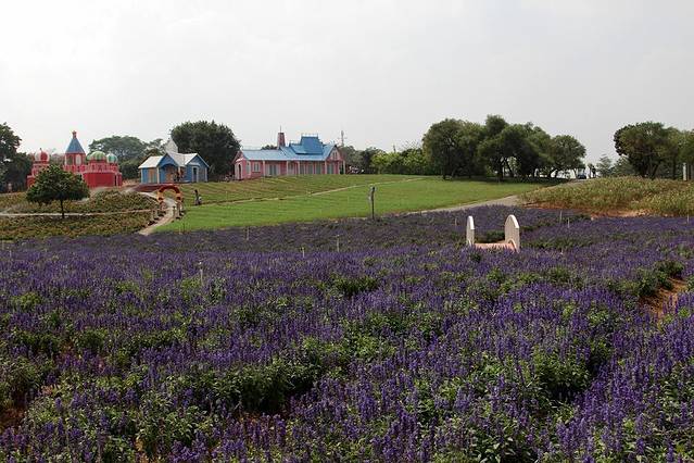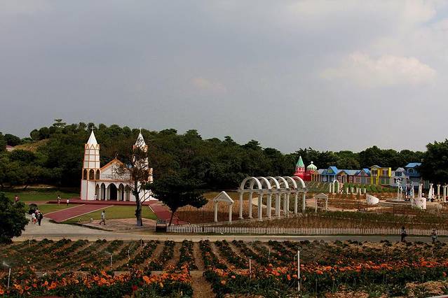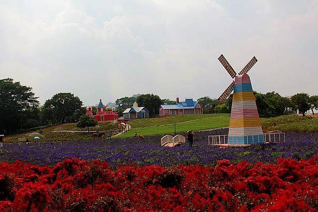 闻着花香来到了欧洲风情街,这里有荷兰风车,有大片的郁金香花海,浪漫的欧洲建筑构成了一副美丽的画卷。