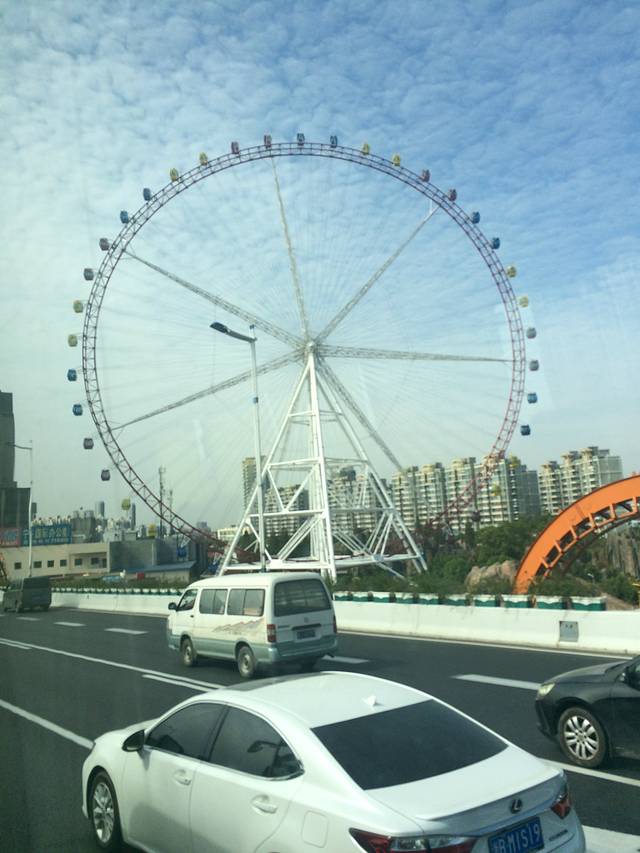 坐上大巴看见的锦江乐园摩天轮