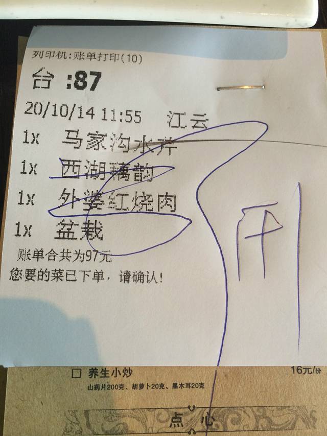在饭店解决午餐,在上海没有吃过米饭,出外第三天才吃米饭,味道可以的农家菜,两个人3菜米饭,62元结账。(糖醋排骨、地三鲜、蒜蓉木耳菜)