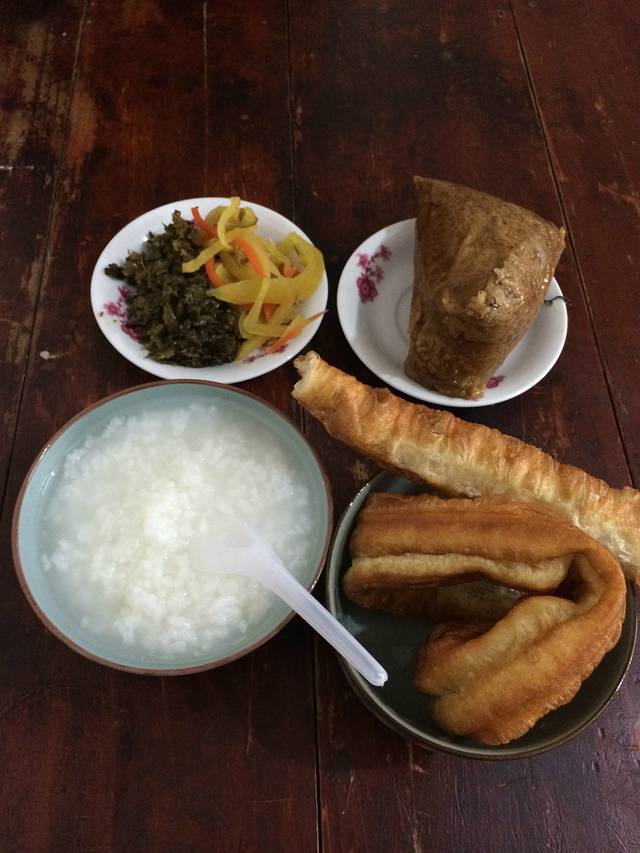 农家早餐,还加个馄饨,好饱