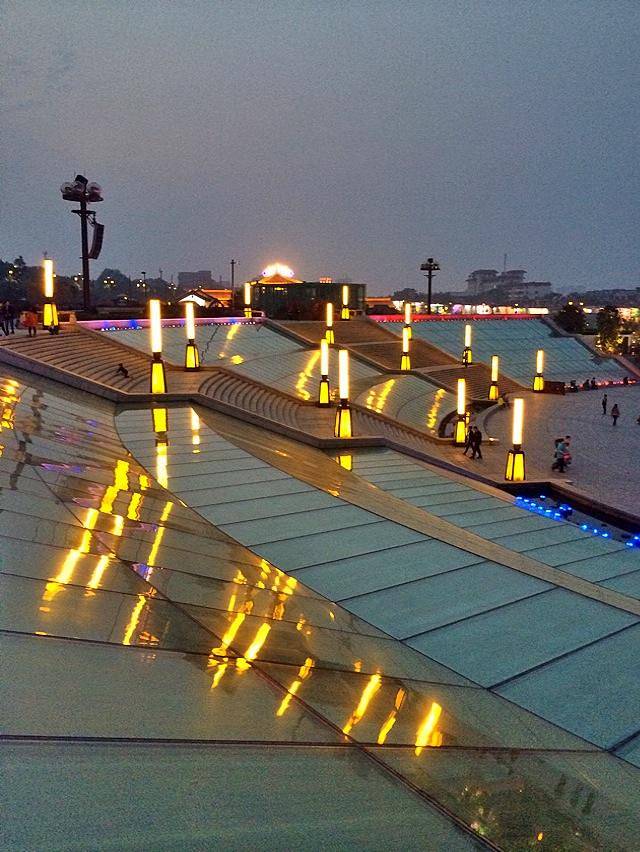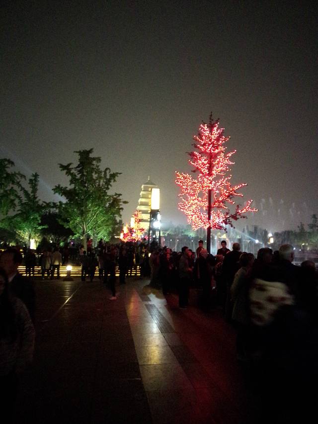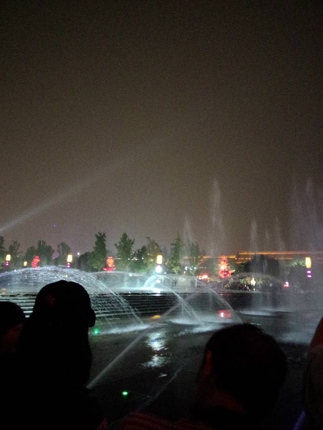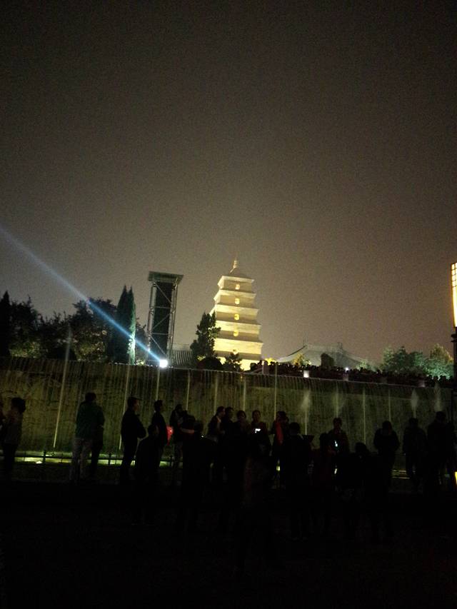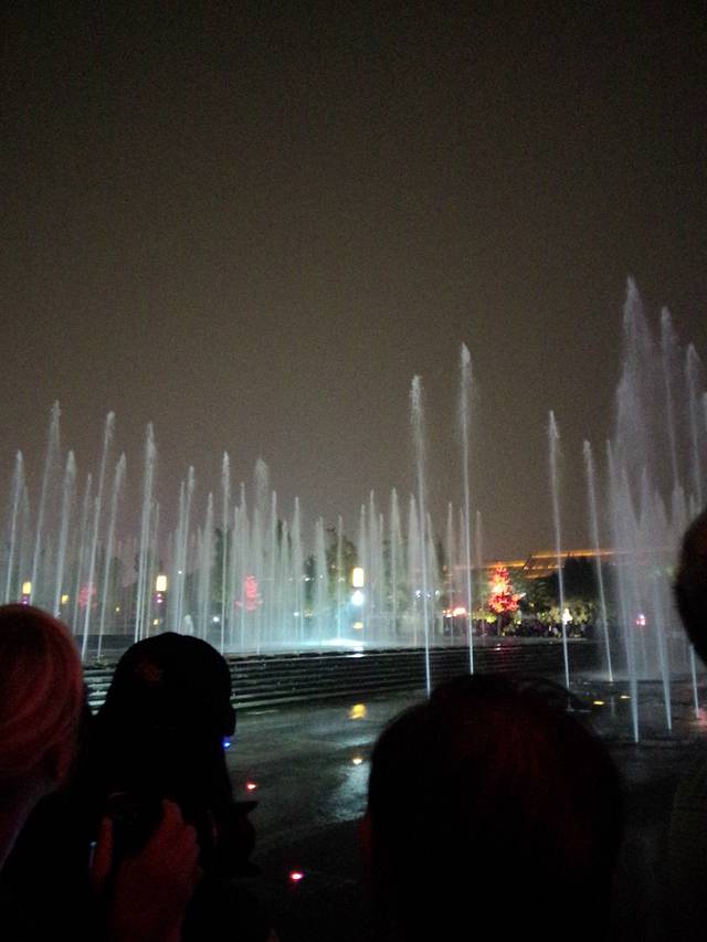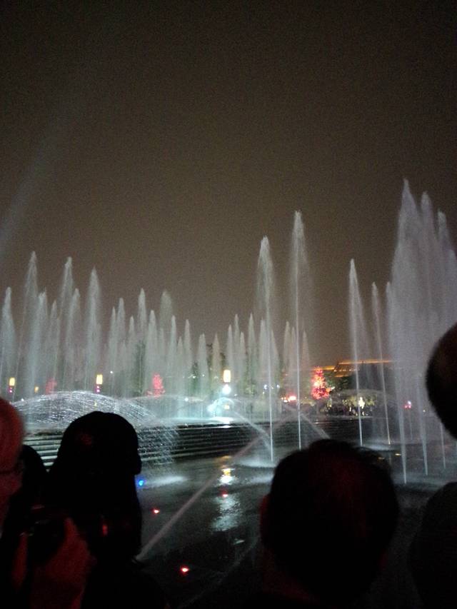 晚20:20前往大雁塔广场,欣赏音乐喷泉,壮观的场面,喷泉池子很大,运气不错,以为来晚了,看不到此美景!
