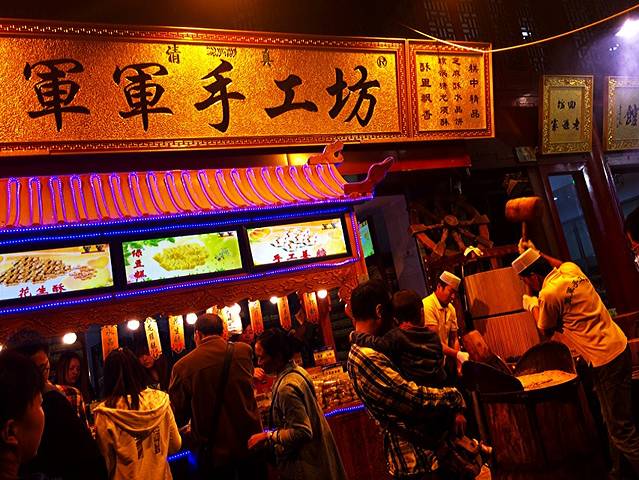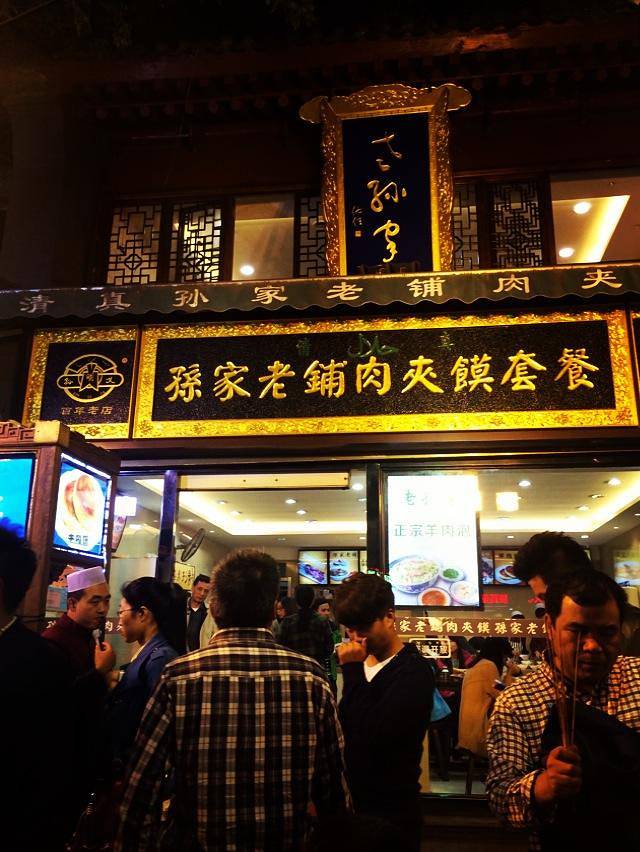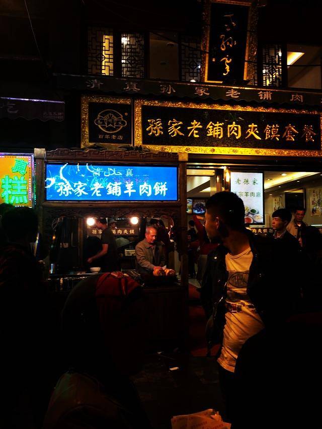 还了自行车,离开古城墙,开车前往有名的回民街,一堆美食等着我们,地道的羊肉串、羊肉泡馍、肉夹馍、石榴汁、柿子饼等,数不胜数,一一尝尝,美味啊!