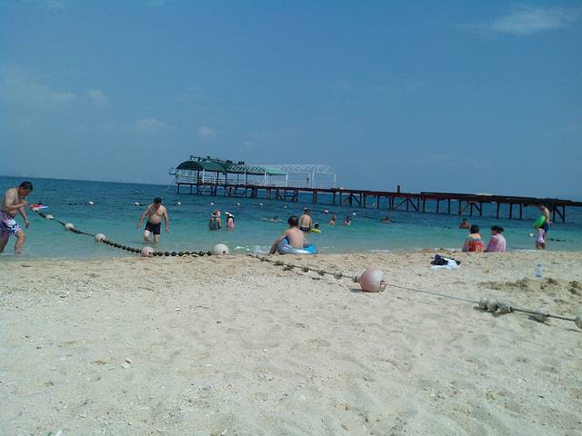 西岛,依然报团一日游。西岛具有“中国的马尔代夫”的称号,水质、温度等适合珊瑚、热带鱼的生存,海水清澈见底,在下船的地方就能看到成群的热带鱼,建议大家带包鱼食,那些鱼们肯定会你争我夺的蜂拥而至,岛上的鱼食十块钱一包,太贵了。正是因为西岛独特的环境,这里成为了海上娱乐项目的王国,潜水、香蕉船、摩托艇等等,朋友们可以潜水,抓到的热带鱼可以带走,还可以摸一下珊瑚,珊瑚可是国家二级保护动物。和蜈支洲岛相比,水质沙滩都不会次于蜈支洲岛,但是价格却实惠得多。和西岛相连的牛王岭,上面有座山盟海誓亭,三面环海,好像梁朝伟刘嘉玲是在这里拍的婚纱照。下午五点钟回去,我们让导游把我们带到第一海鲜市场,海鲜一百多,加工一百多,切记,一定要砍价,味道很好。晚饭回去买了点水果,一天行程结束了。