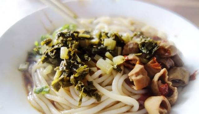 一份拌的,一份汤的,但感觉差不多,统一价六元一碗。 大肠卤的很香,辣味完全浸渍,可以说冬天来一碗是相当舒服的,舌尖上的建宁也像一座闽北或者江西的县城。可惜的是,吃完后我的感冒更加重了。