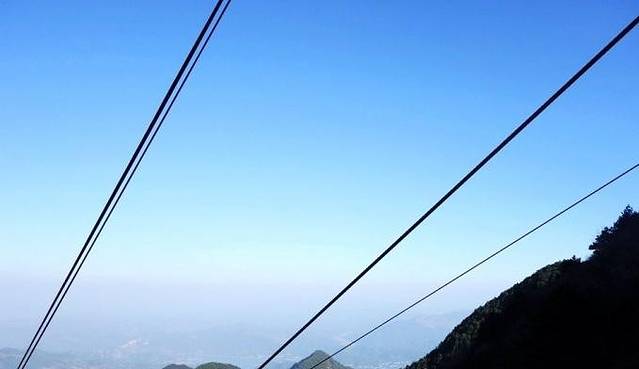 没有小火车去滑雪场实在太远,而且这个季节也没有雪滑,于是踏上了返程的路。缆车下山时看到了对面的泰宁大金湖,只隐隐约约抓拍到了一张,真的是翻过一座山就是泰宁的地界了。