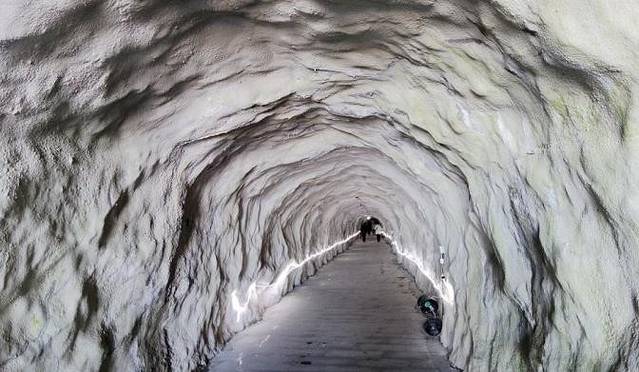 原来还要穿过一个山洞,这个洞叫时空隧道,全长有770米,步行需要10分钟。在里面望不到头,五颜六色的小灯勾勒出一种梦幻的感觉。