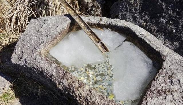 跋山涉水来到仙人池,还以为是仙女洗澡的地方,可这水,连洗脚都不够吧!
