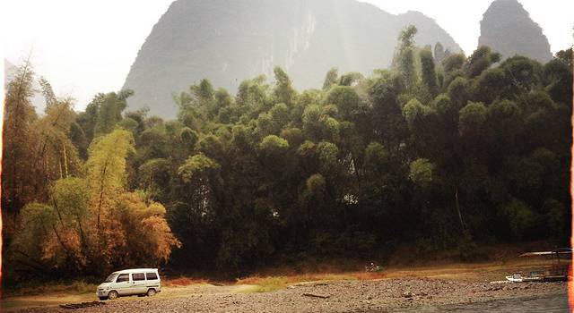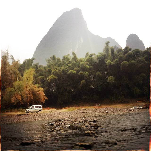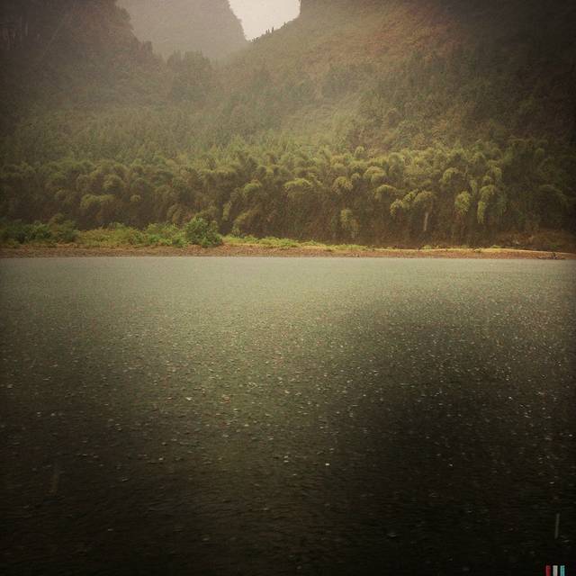 关于漓江:我见过它三次,一次是艳阳,一次是烟雨,还有一次是大雨。意境最美的是那次烟雨,四月的微风小雨,没有太阳的刺眼和暴晒,坐着竹筏晃晃悠悠很舒服。艳阳的那次是在09年的2月,整个世界都很纯粹很干净的感觉,水清澈见底,山甲天下。这次的漓江大雨,召集了一个半月的量,风大雨大还伴有雷鸣……到江中水深的地方,只能慢慢开……算是……比较特别的一次经历,所以,如果出游时天气不是明朗的时候务必带上一次性雨衣,救生衣一定穿好,这是基于我是唯一一个穿雨衣坐竹筏的人给予的建议,在江里受凉一定不会是件高兴事。对于闺蜜,她为了美放弃了我递给她的雨衣,和河里其它的人一块淋得浑身干净投与我幽怨的眼神。