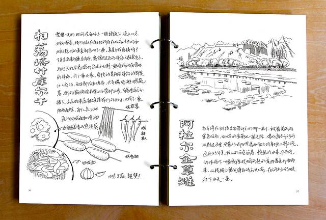 《新疆漫游记》旅行绘本全书共92页,这是一次@80公升爱心组织和狼爪赞助装备去新疆的旅行经历,认识了四位小伙伴,在路上走进维吾尔族大家庭,给他们用拍立得留下许多珍贵照片,去了祖国最西端的红其拉甫口岸,去了世界海拔最低点艾丁湖,在旅行中遇到许多有趣的人和故事。2013年9月7—9月18日。