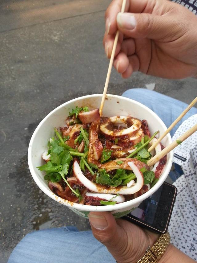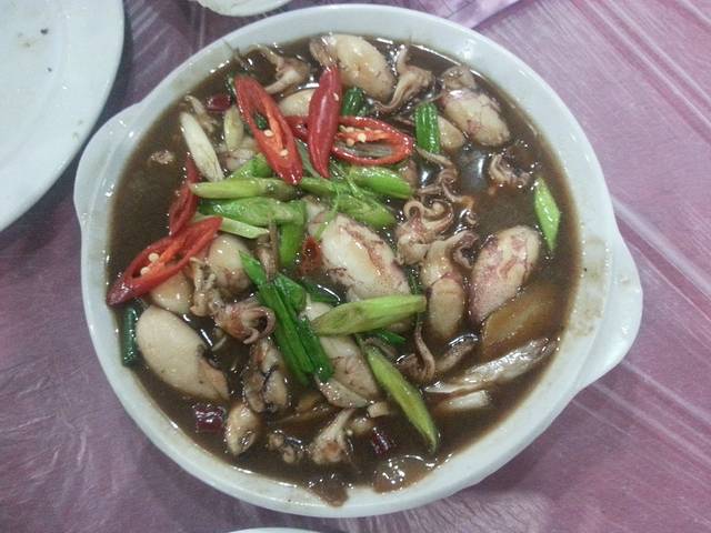 蜜汁猪颈肉,炒海蛏子,酱油水小鱿鱼,椒盐虾姑,炒香螺片