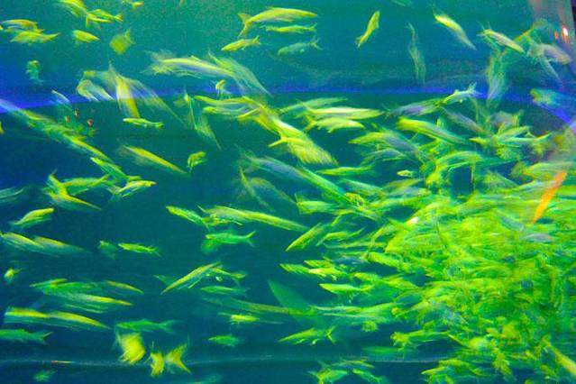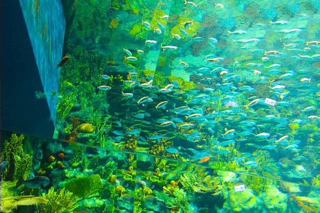 ▲绚丽的海底世界,隔着厚厚的玻璃,可以清楚地观赏到许多深海鱼。