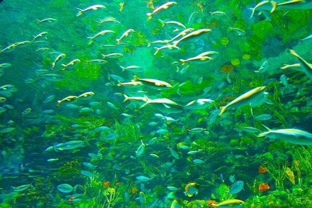 ▲正在喂食所以瞬间聚集很多鱼,看得眼花缭乱。